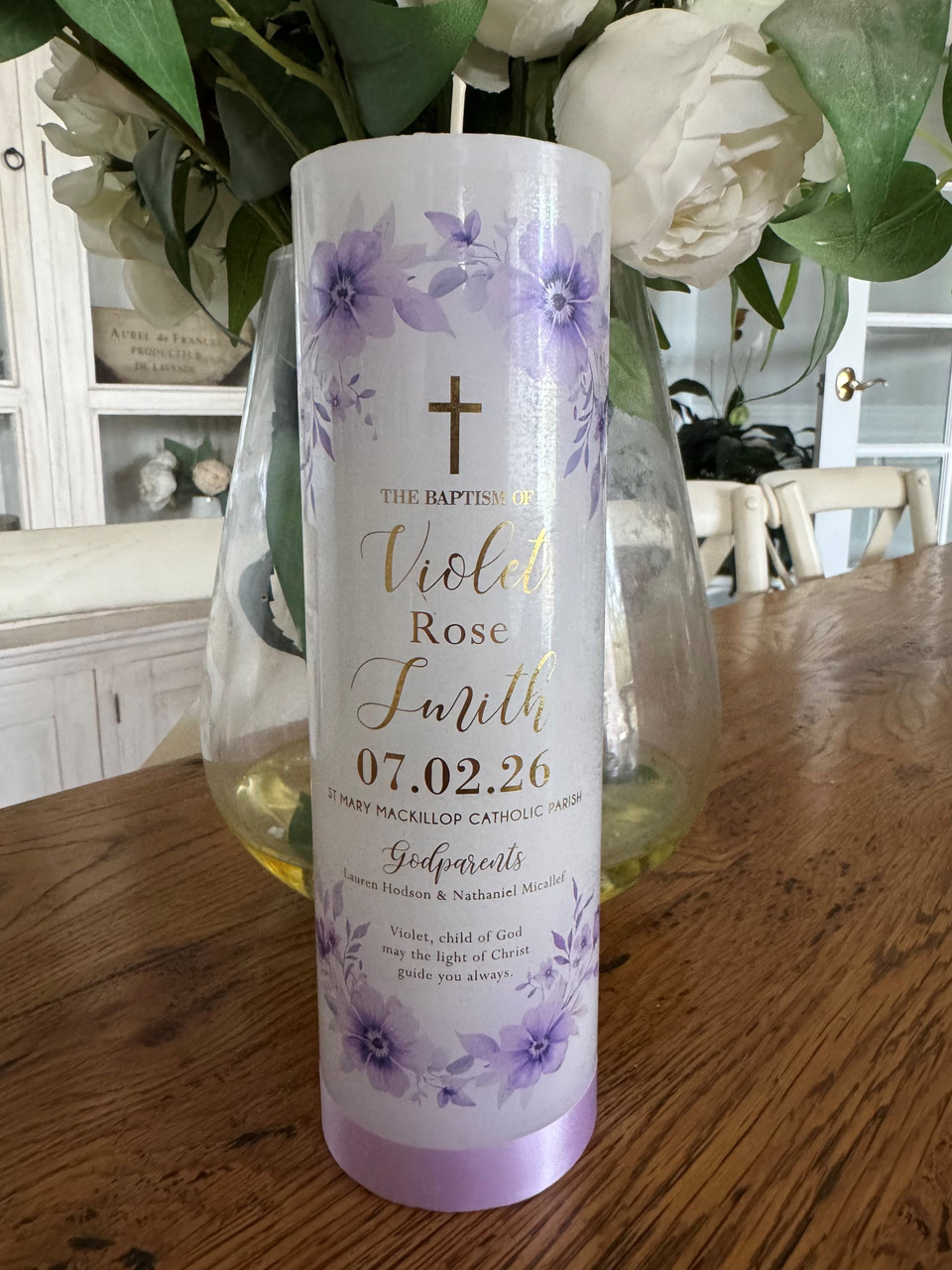 - Purple Blooms Baptism Candle